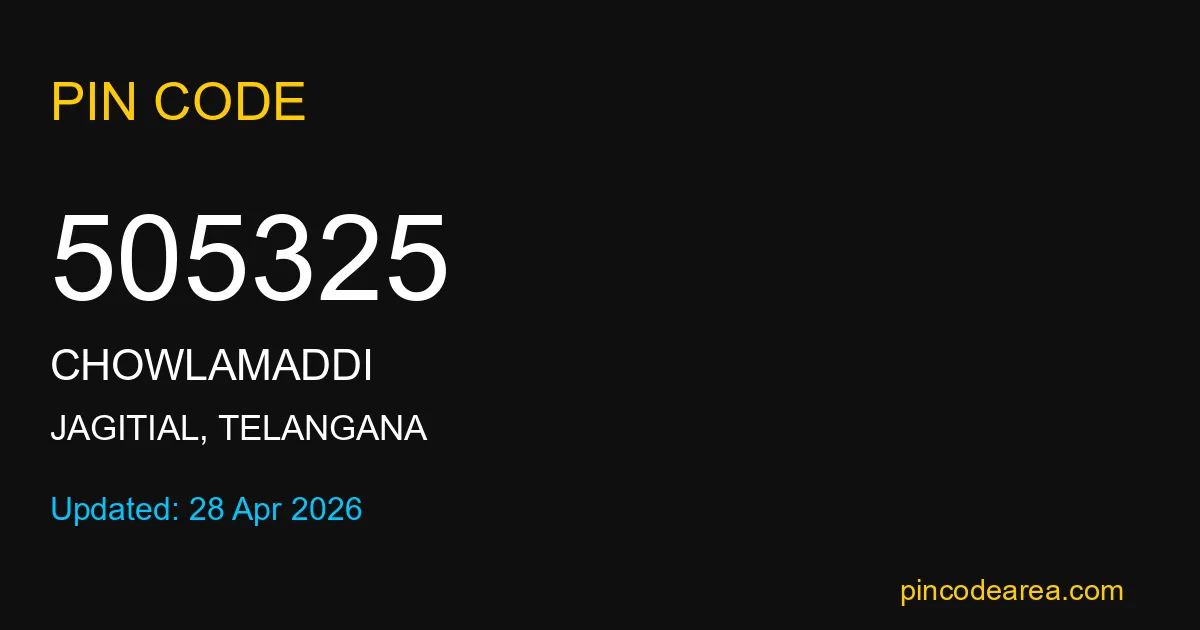 505325 PIN Code is assigned to Chowlamaddi Post Office located in Jagitial district of Telangana. It helps identify the exact delivery area for postal and courier services.