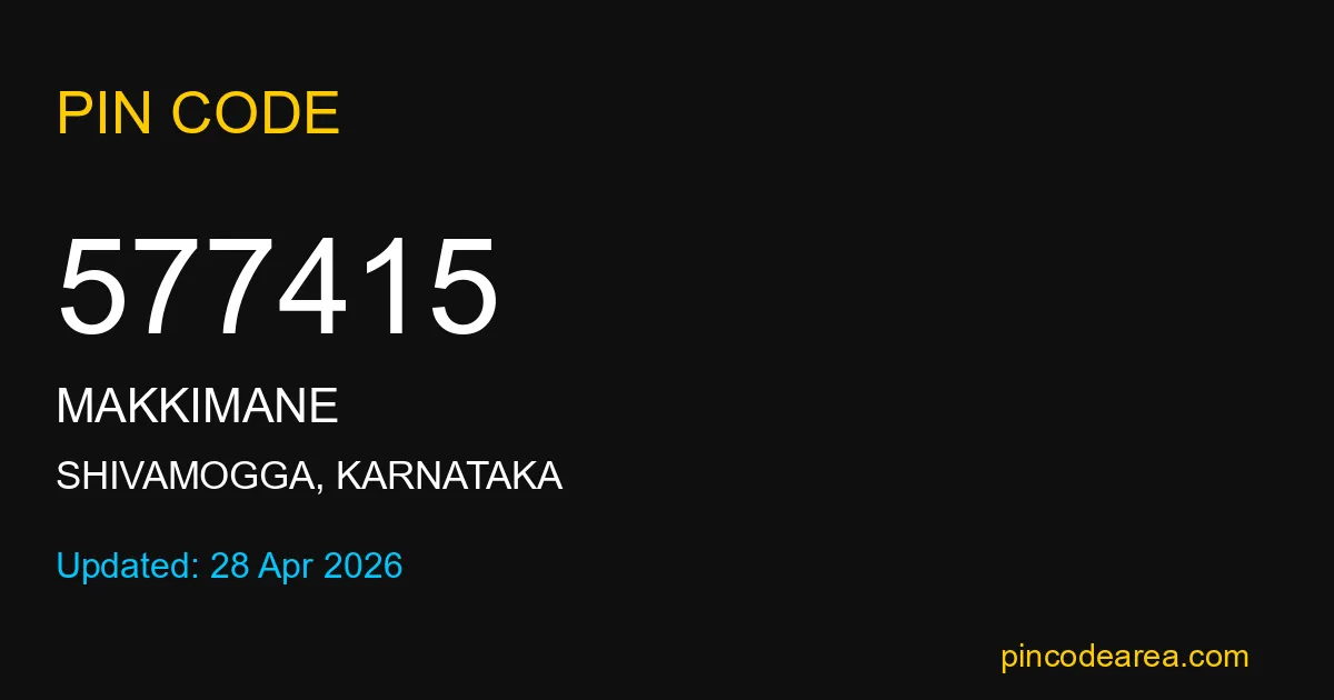 577415 PIN Code is assigned to Makkimane Post Office located in Shivamogga district of Karnataka. It helps identify the exact delivery area for postal and courier services.