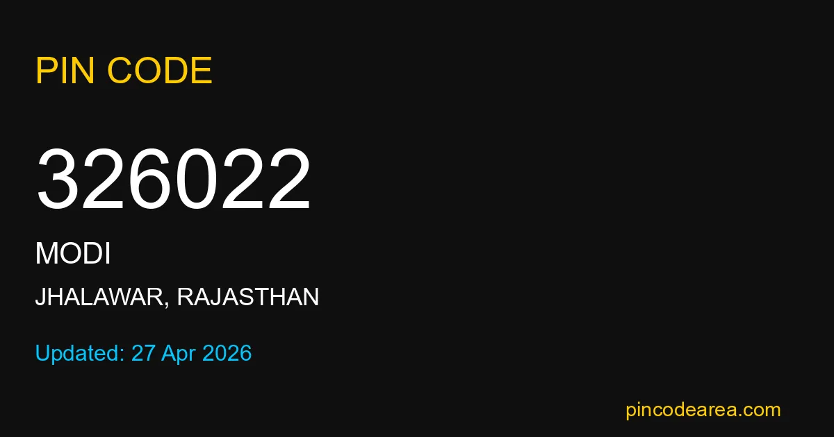 If you are searching for accurate location details, 326022 helps identify the exact postal region of Modi in Rajasthan.