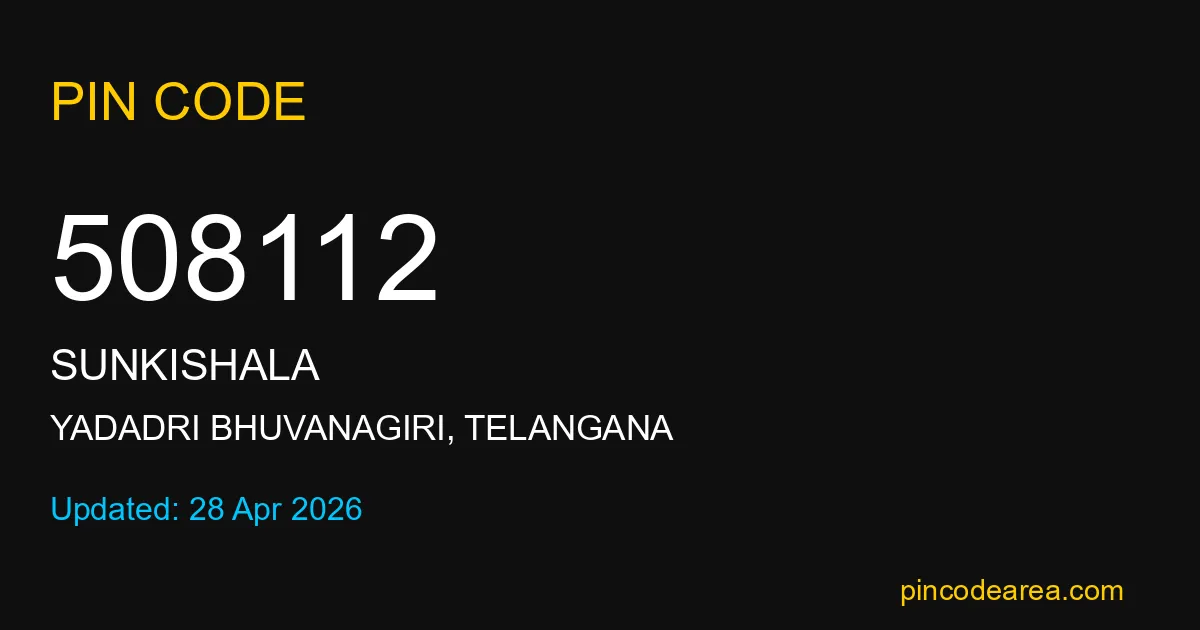 508112 PIN Code is assigned to Sunkishala Post Office located in Yadadri Bhuvanagiri district of Telangana. It helps identify the exact delivery area for postal and courier services.
