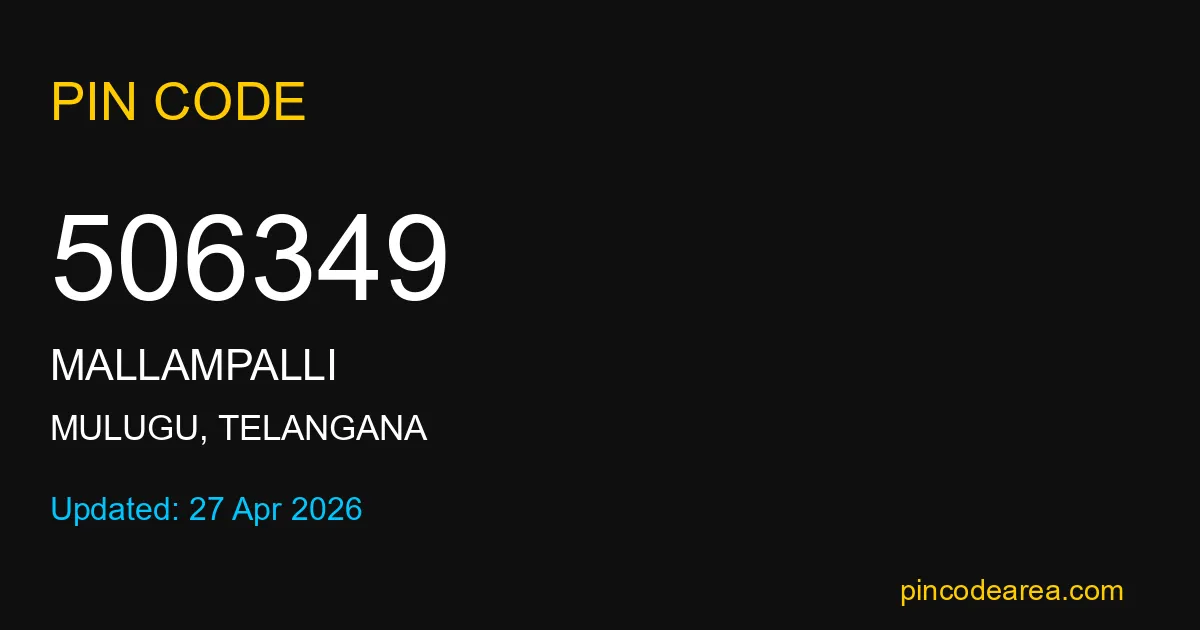 506349 PIN Code is assigned to Mallampalli Post Office located in Mulugu district of Telangana. It helps identify the exact delivery area for postal and courier services.