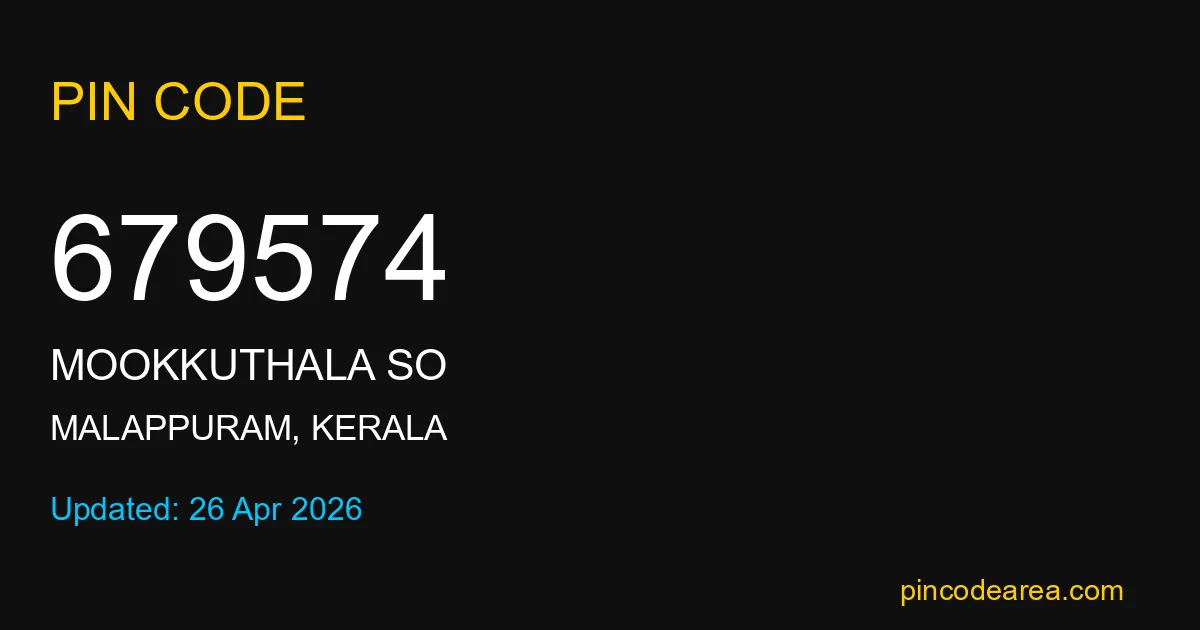 If you are searching for accurate location details, 679574 helps identify the exact postal region of Mookkuthala SO in Kerala.