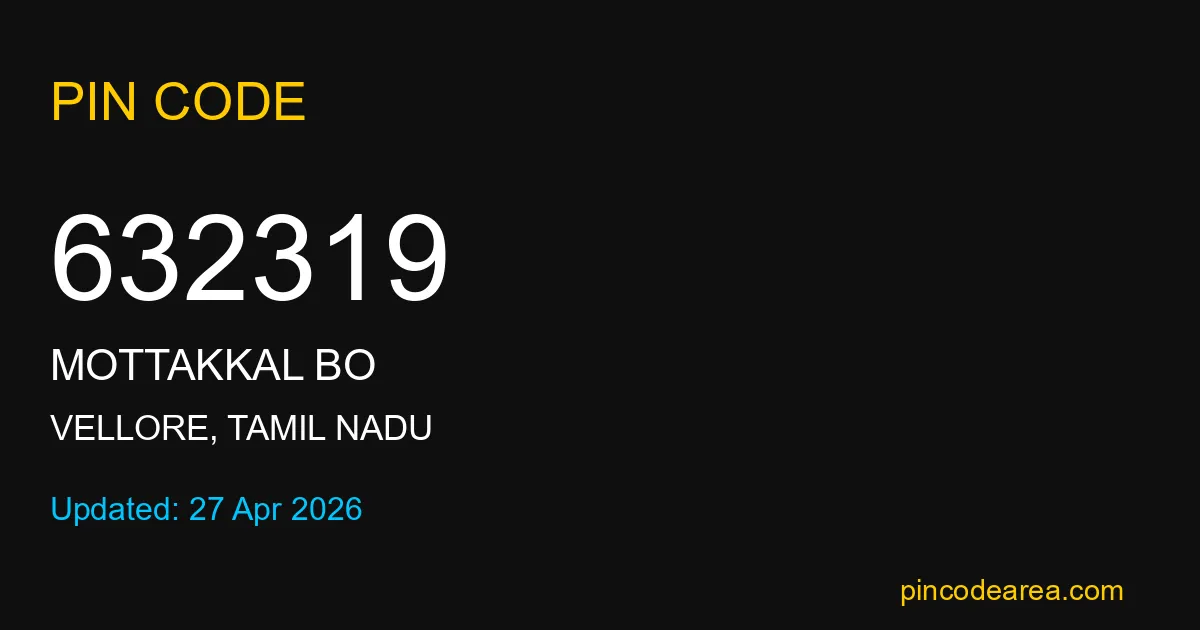 If you are searching for accurate location details, 632319 helps identify the exact postal region of Mottakkal BO in Tamil Nadu.