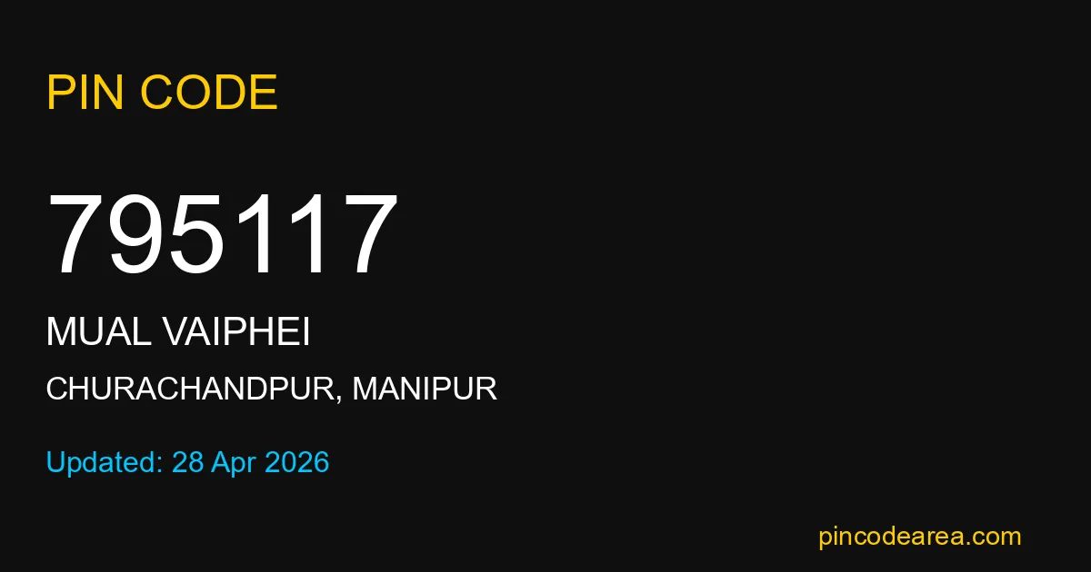 795117 PIN Code is assigned to Mual Vaiphei Post Office located in Churachandpur district of Manipur. It helps identify the exact delivery area for postal and courier services.