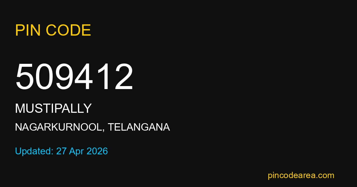 509412 PIN Code is assigned to Mustipally Post Office located in Nagarkurnool district of Telangana. It helps identify the exact delivery area for postal and courier services.