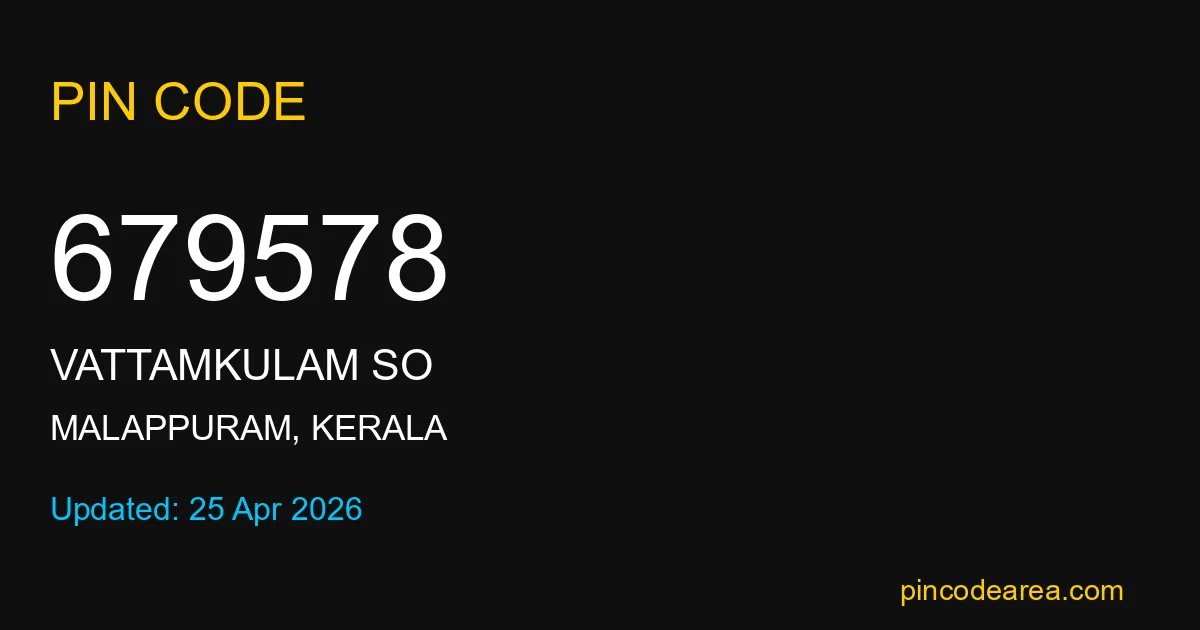 If you are searching for accurate location details, 679578 helps identify the exact postal region of Vattamkulam SO in Kerala.