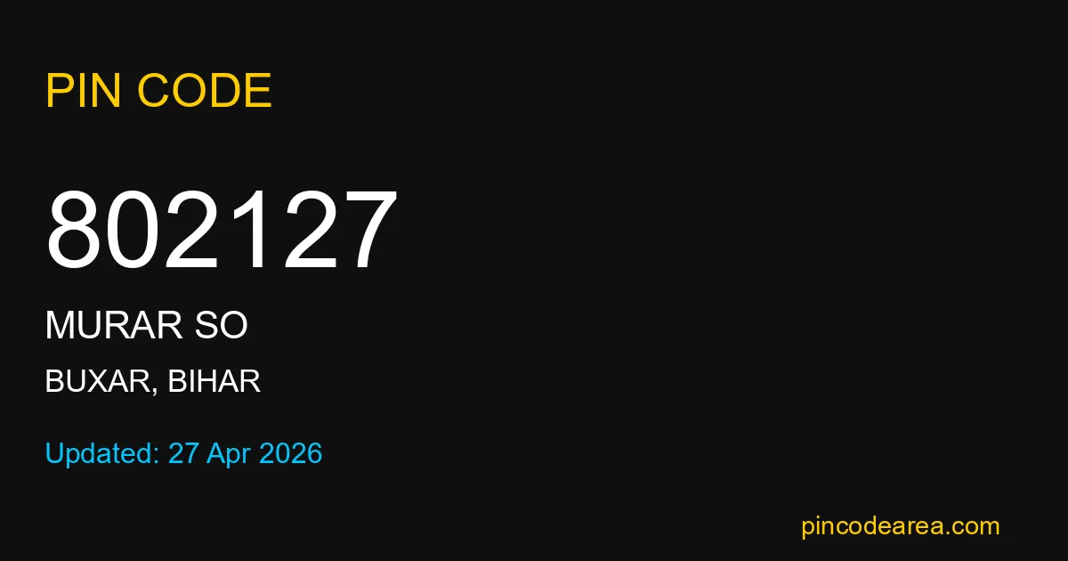 If you are searching for accurate location details, 802127 helps identify the exact postal region of Murar SO in Bihar.