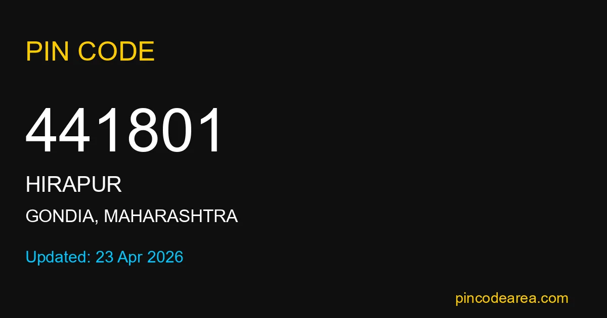 441801 PIN Code is assigned to Hirapur Post Office located in Gondia district of Maharashtra. It helps in identifying the exact delivery area.