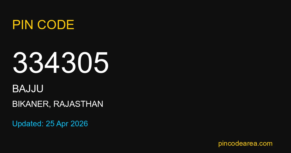 If you are searching for accurate location details, 334305 helps identify the exact postal region of Bajju in Rajasthan.