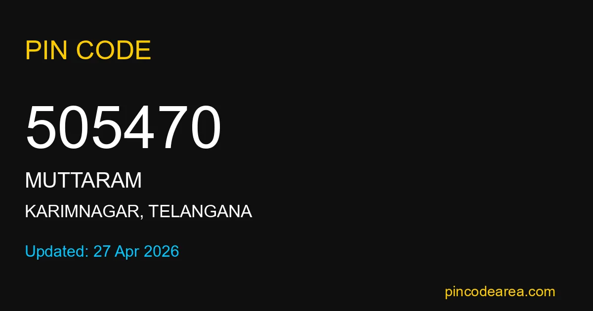 505470 PIN Code is assigned to Muttaram Post Office located in Karimnagar district of Telangana. It helps identify the exact delivery area for postal and courier services.