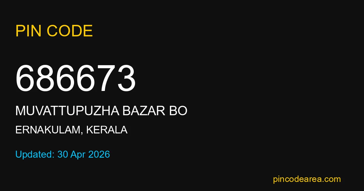 If you are searching for accurate location details, 686673 helps identify the exact postal region of Muvattupuzha Bazar BO in Kerala.