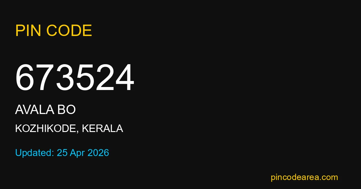 If you are searching for accurate location details, 673524 helps identify the exact postal region of Avala BO in Kerala.