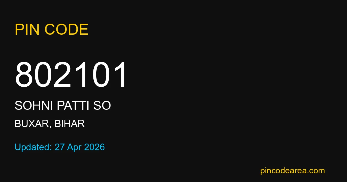 802101 PIN Code is assigned to Sohni Patti SO Post Office located in Buxar district of Bihar. It helps identify the exact delivery area for postal and courier services.