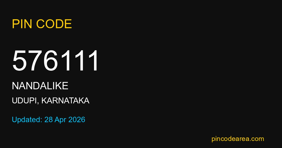 576111 PIN Code is assigned to Nandalike Post Office located in Udupi district of Karnataka. It helps identify the exact delivery area for postal and courier services.