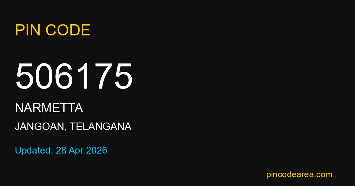 506175 PIN Code is assigned to Narmetta Post Office located in Jangoan district of Telangana. It helps identify the exact delivery area for postal and courier services.