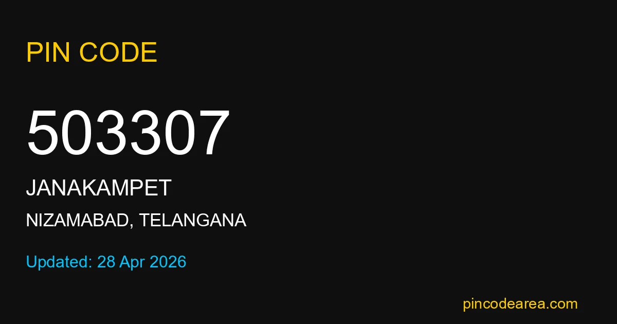 503307 PIN Code is assigned to Janakampet Post Office located in Nizamabad district of Telangana. It helps identify the exact delivery area for postal and courier services.