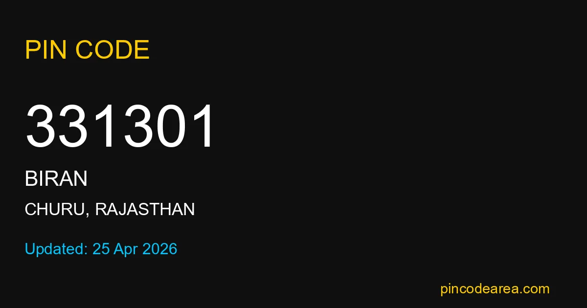 If you are searching for accurate location details, 331301 helps identify the exact postal region of Biran in Rajasthan.