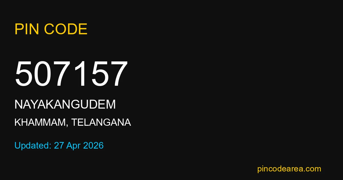 507157 PIN Code is assigned to Nayakangudem Post Office located in Khammam district of Telangana. It helps identify the exact delivery area for postal and courier services.
