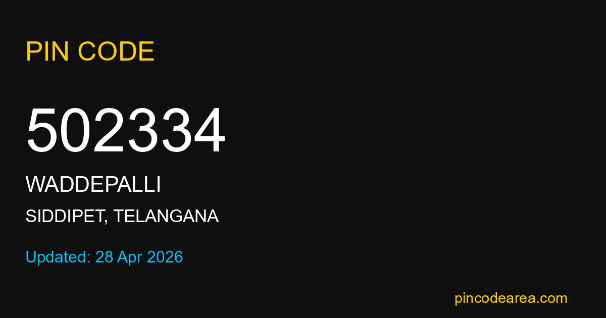502334 PIN Code is assigned to Waddepalli Post Office located in Siddipet district of Telangana. It helps identify the exact delivery area for postal and courier services.