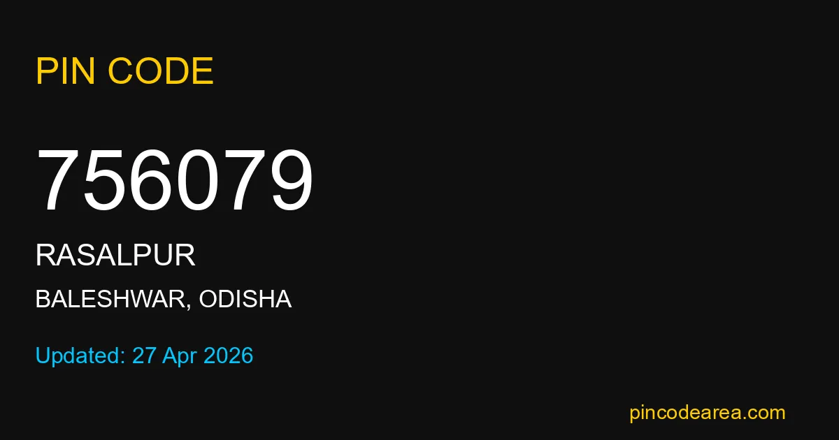 756079 PIN Code is assigned to Rasalpur Post Office located in Baleshwar district of Odisha. It helps identify the exact delivery area for postal and courier services.