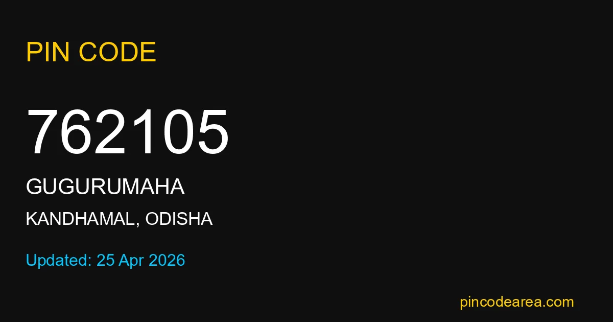762105 PIN Code is assigned to Gugurumaha Post Office located in Kandhamal district of Odisha. It helps in identifying the exact delivery area.