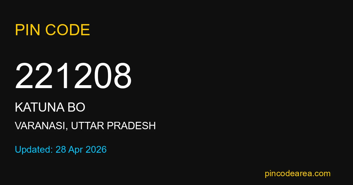 221208 PIN Code belongs to Katuna BO Post Office in Varanasi district of Uttar Pradesh, India. This area mainly includes local residential and rural regions where India Post ensures timely mail and parcel delivery services.