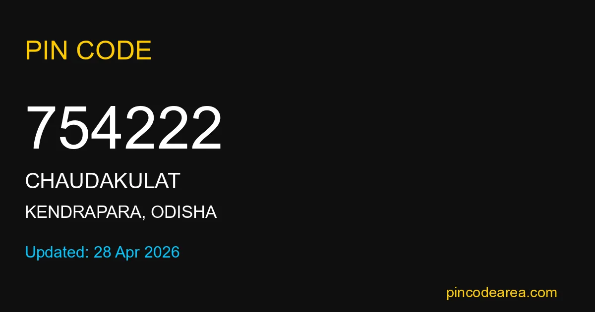 If you are searching for accurate location details, 754222 helps identify the exact postal region of Chaudakulat in Odisha.