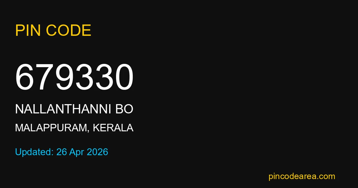 If you are searching for accurate location details, 679330 helps identify the exact postal region of Nallanthanni BO in Kerala.
