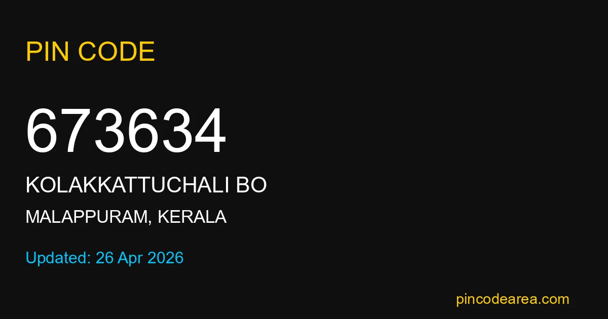 If you are searching for accurate location details, 673634 helps identify the exact postal region of Kolakkattuchali BO in Kerala.