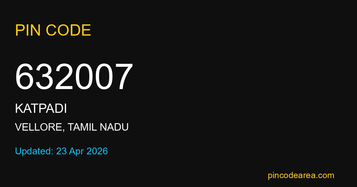 If you are searching for accurate location details, 632007 helps identify the exact postal region of Katpadi in Tamil Nadu.