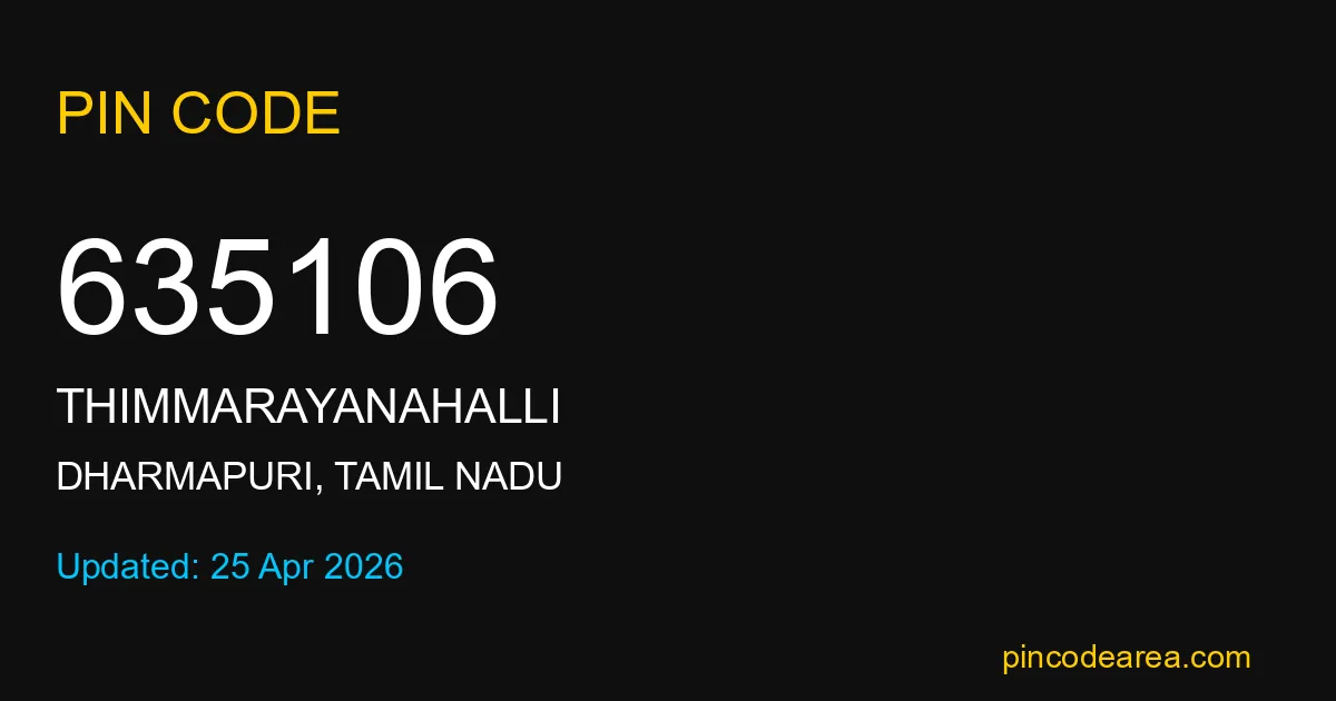 If you are searching for accurate location details, 635106 helps identify the exact postal region of Thimmarayanahalli in Tamil Nadu.