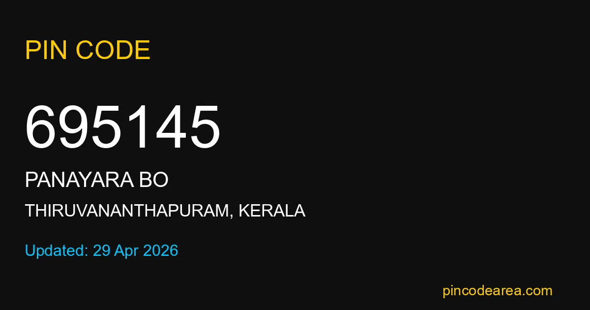 695145 PIN Code is assigned to Panayara BO Post Office located in Thiruvananthapuram district of Kerala. It helps identify the exact delivery area for postal and courier services.