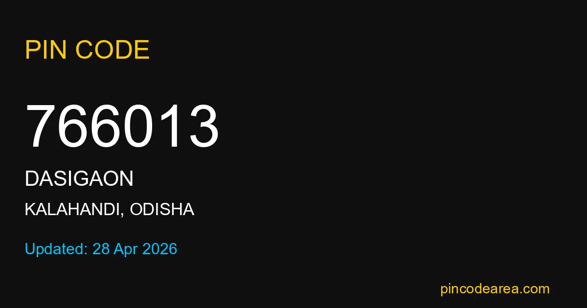 766013 PIN Code is assigned to Dasigaon Post Office located in Kalahandi district of Odisha. It helps identify the exact delivery area for postal and courier services.