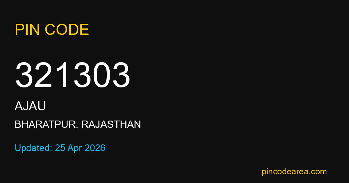 321303 PIN Code is assigned to Ajau Post Office located in Bharatpur district of Rajasthan. It helps in identifying the exact delivery area.