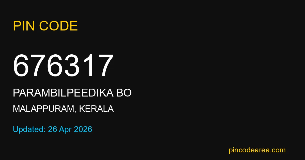 If you are searching for accurate location details, 676317 helps identify the exact postal region of Parambilpeedika BO in Kerala.