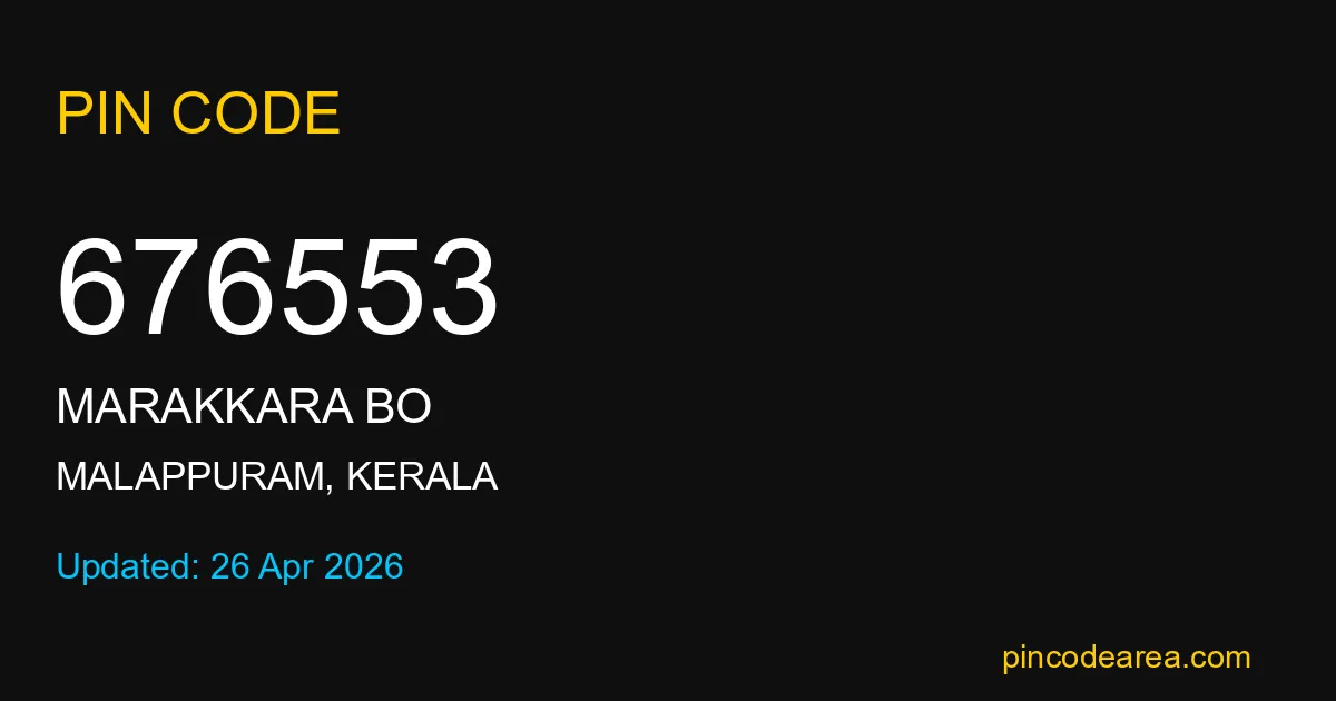 If you are searching for accurate location details, 676553 helps identify the exact postal region of Marakkara BO in Kerala.