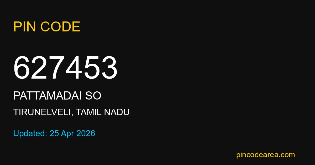 If you are searching for accurate location details, 627453 helps identify the exact postal region of Pattamadai SO in Tamil Nadu.