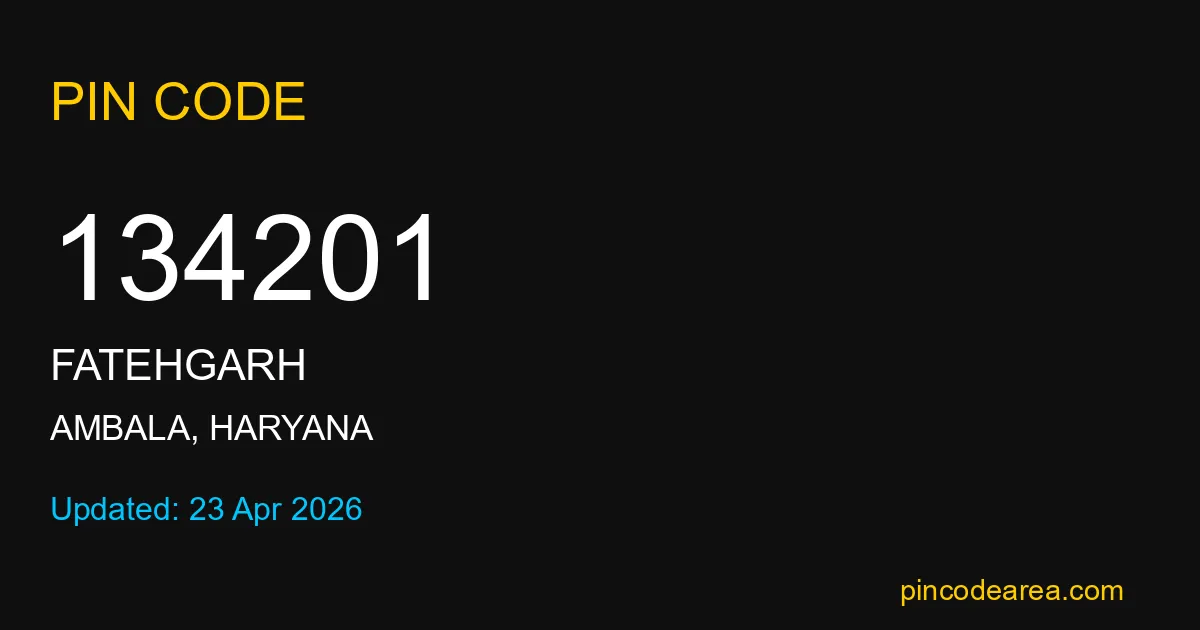 134201 PIN Code belongs to Fatehgarh Post Office in Ambala district of Haryana, India. This area mainly includes local residential and rural regions where India Post ensures timely mail and parcel delivery services.