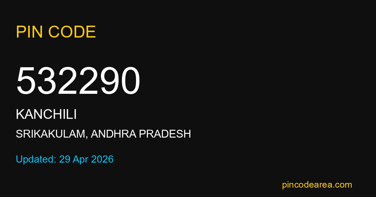 532290 PIN Code is assigned to Kanchili Post Office located in Srikakulam district of Andhra Pradesh. It helps identify the exact delivery area for postal and courier services.