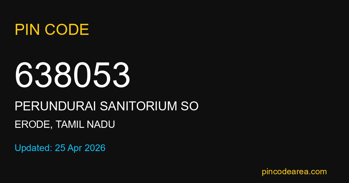 If you are searching for accurate location details, 638053 helps identify the exact postal region of Perundurai Sanitorium SO in Tamil Nadu.