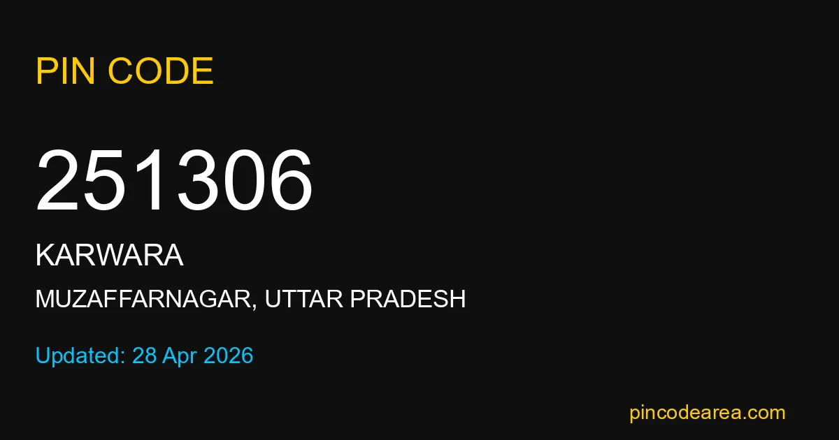 251306 PIN Code is assigned to Karwara Post Office located in Muzaffarnagar district of Uttar Pradesh. It helps identify the exact delivery area for postal and courier services.