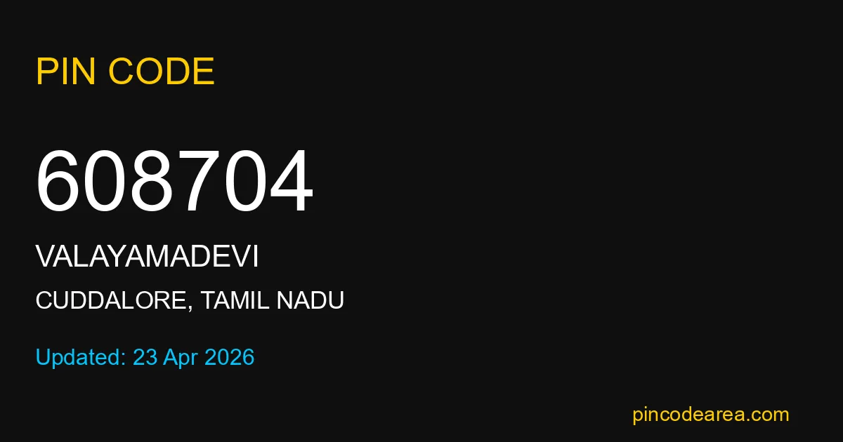 If you are searching for accurate location details, 608704 helps identify the exact postal region of Valayamadevi in Tamil Nadu.