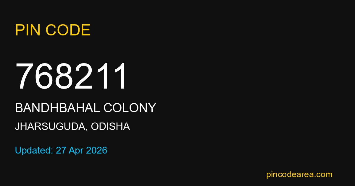 768211 PIN Code is assigned to Bandhbahal Colony Post Office located in Jharsuguda district of Odisha. It helps identify the exact delivery area for postal and courier services.