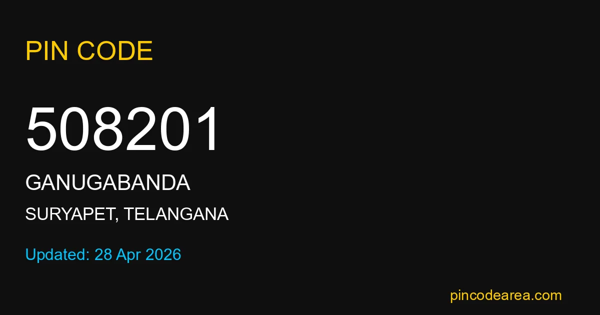 508201 PIN Code is assigned to Ganugabanda Post Office located in Suryapet district of Telangana. It helps identify the exact delivery area for postal and courier services.