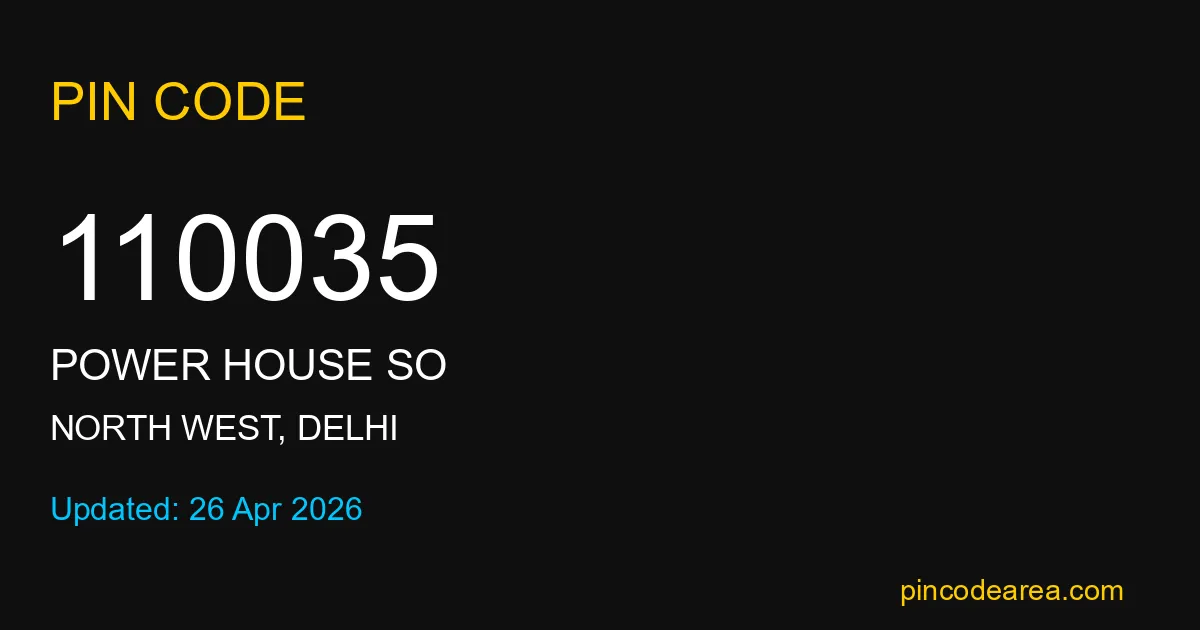If you are searching for accurate location details, 110035 helps identify the exact postal region of Power House SO in Delhi.