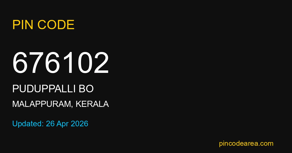 If you are searching for accurate location details, 676102 helps identify the exact postal region of Puduppalli BO in Kerala.