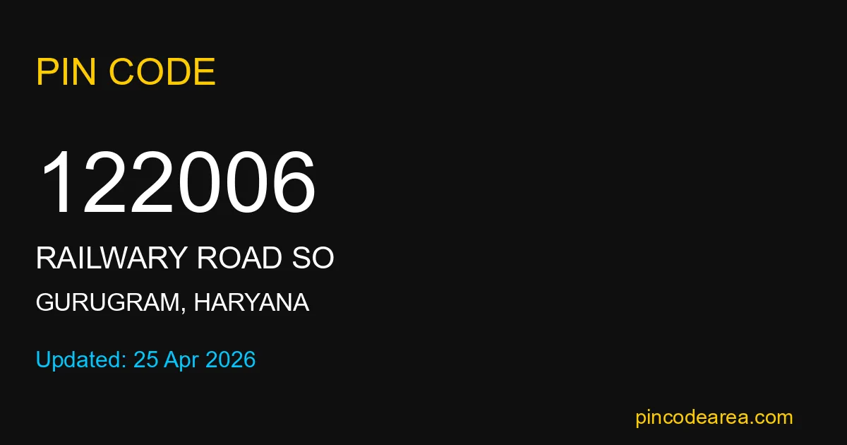 122006 PIN Code is assigned to Railwary Road SO Post Office located in Gurugram district of Haryana. It helps in identifying the exact delivery area.