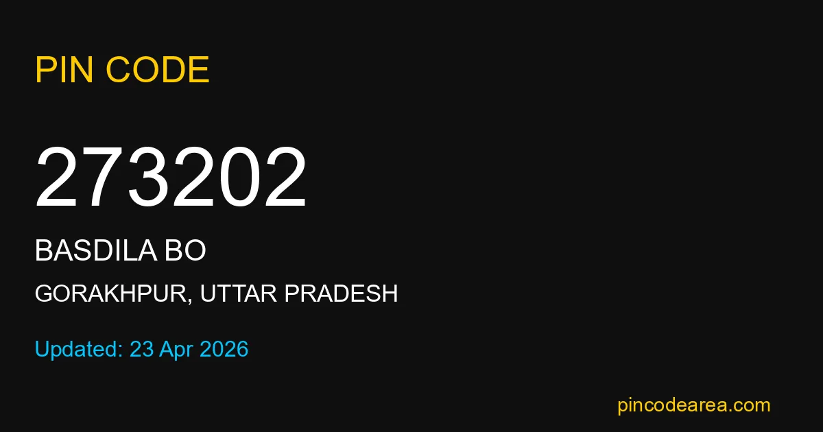 273202 PIN Code belongs to Basdila BO Post Office in Gorakhpur district of Uttar Pradesh, India. This area mainly includes local residential and rural regions where India Post ensures timely mail and parcel delivery services.