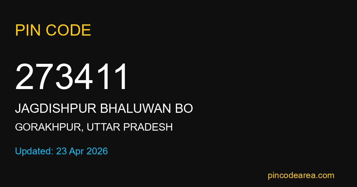 If you are searching for accurate location details, 273411 helps identify the exact postal region of Jagdishpur Bhaluwan BO in Uttar Pradesh.