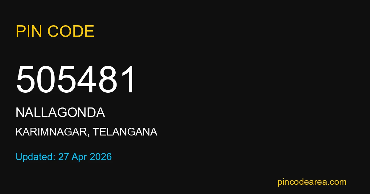 505481 PIN Code is assigned to Nallagonda Post Office located in Karimnagar district of Telangana. It helps identify the exact delivery area for postal and courier services.